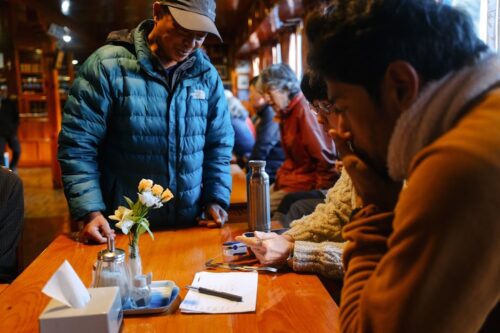 山小屋では、いつもセーター。