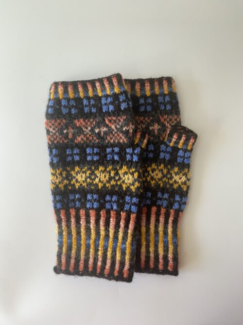 片手は5本指まで編み上がり、もう片方は指のないまま、しばらく脇に放り込まれていた手袋を、ふと取り出し、ハンドウォーマーに作り変えてみた。